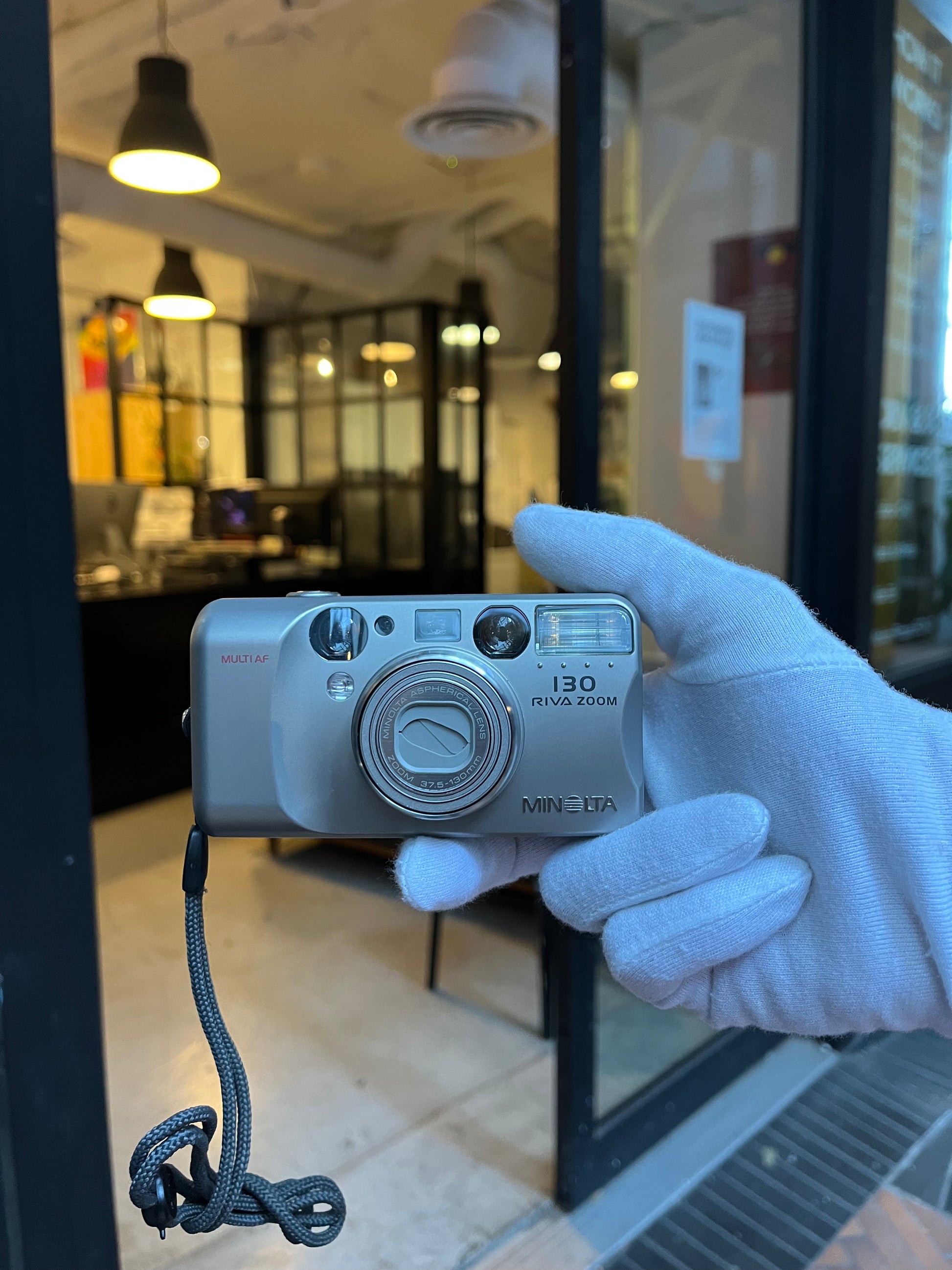The Minolta 130 Riva Zoom is a beautiful pocket sized camera made in a high quality titanium material. It's an easy to use and simple re-useable point and shoot camera perfect for beginners.