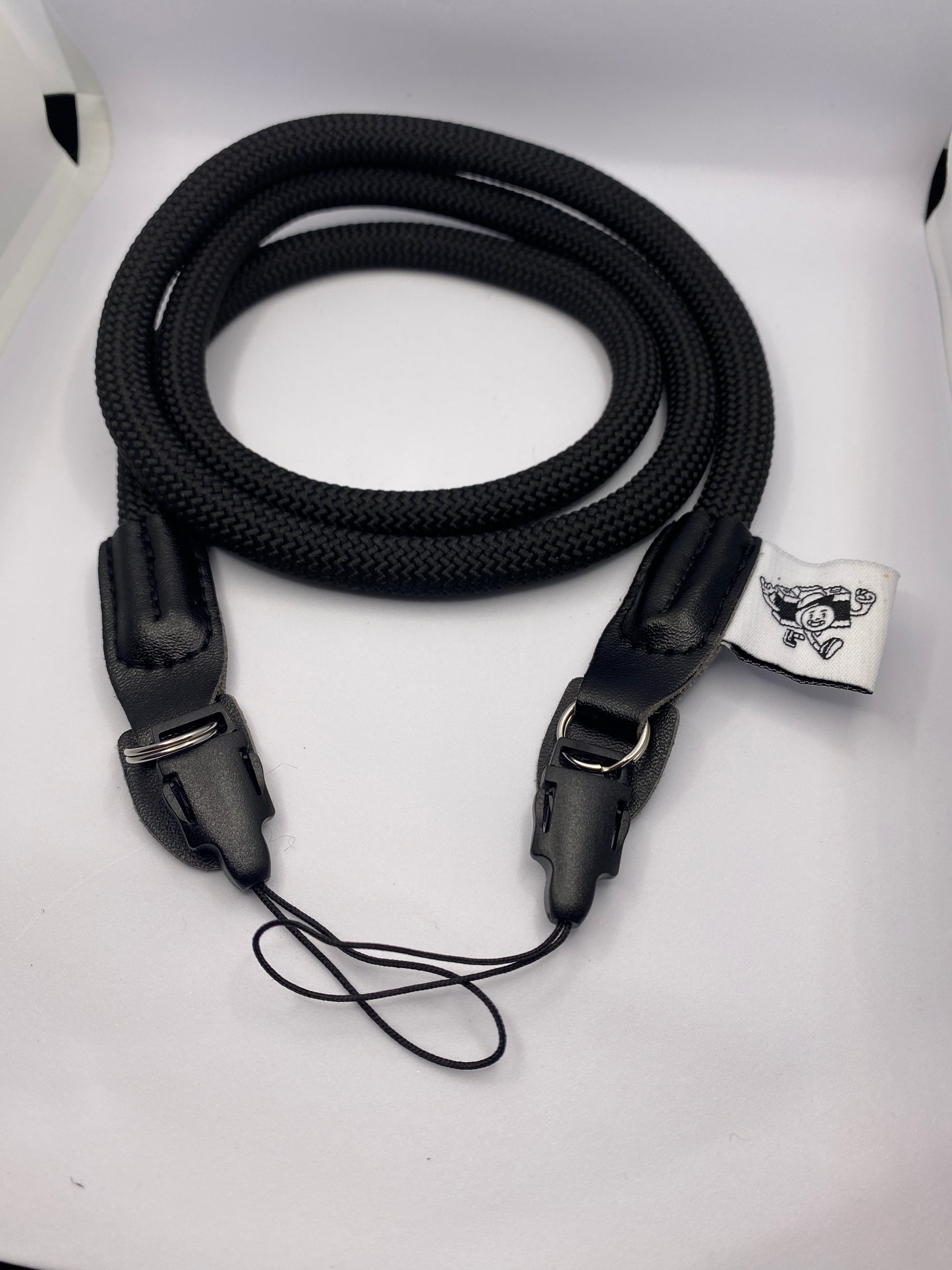 Our straps are made from a durable nylon which is woven into a circular rope. This allows the strap to sit comfortably on your neck without digging in like those pesky flat style straps do.