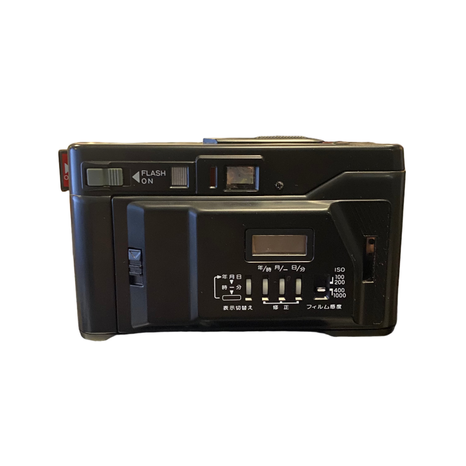 The camera was later revised to have DX coding. These are delineated by DX on body and set of DX pins. The DX version still has the same manual settings for non DX films but DX films will overrule the set value. The presence of a adjustable setting allows for some exposure compensation. To do this with the DX version the DX area on the film cartridge mush be covered by insulating tape. The flash is manually triggered. There is a low light warning in viewfinder to prompt the use to turn on Flash. In normal light it can also be turned on for fill in .
